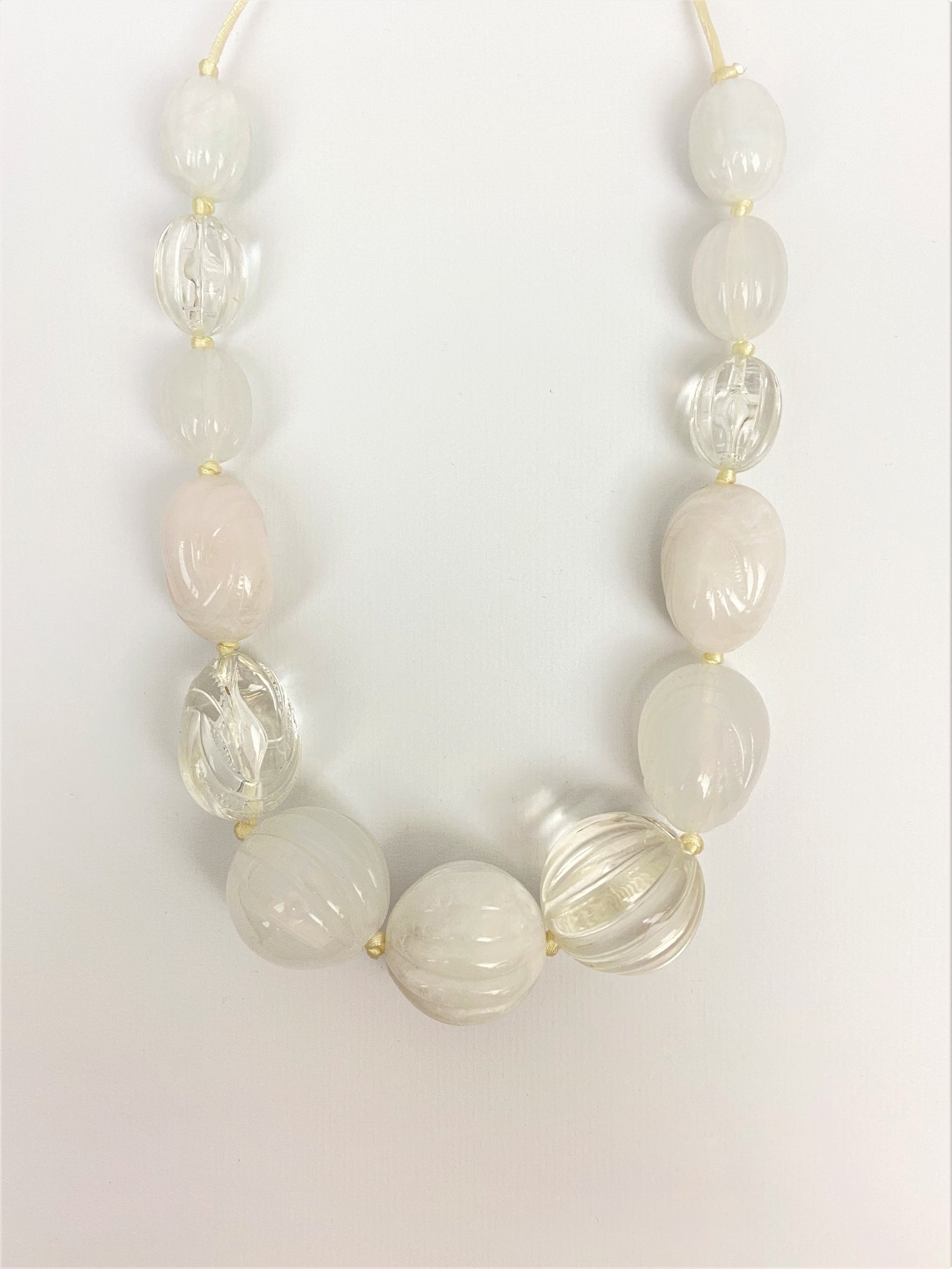 This beautiful Gumusservi Igloo necklace features a mix of delicate melon beads in unique shades of white. Its contemporary design adds a delicate touch of elegance to any look, perfect for any occasion.